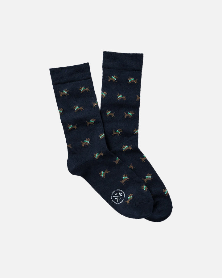 At Royalties, it's the Jack Russells that adds the whimsy. To subtly think of your faithful companion all day long, slip on these socks with small jacquard patterns.