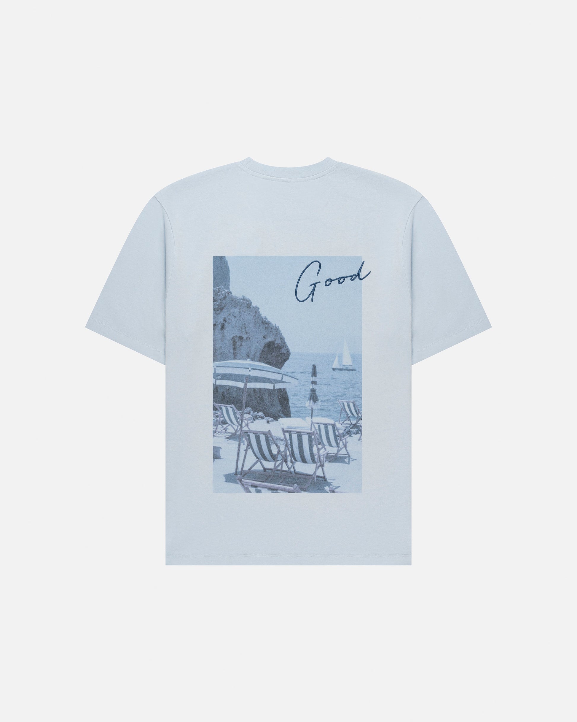 The Tphoto Artwork Tee features a photographic backprint that captures a relaxed, summery moment. The image adds atmosphere to the shirt, while the front remains clean with a small text detail on the chest. A straightforward tee with a visual focus, easy to wear and easy to combine.