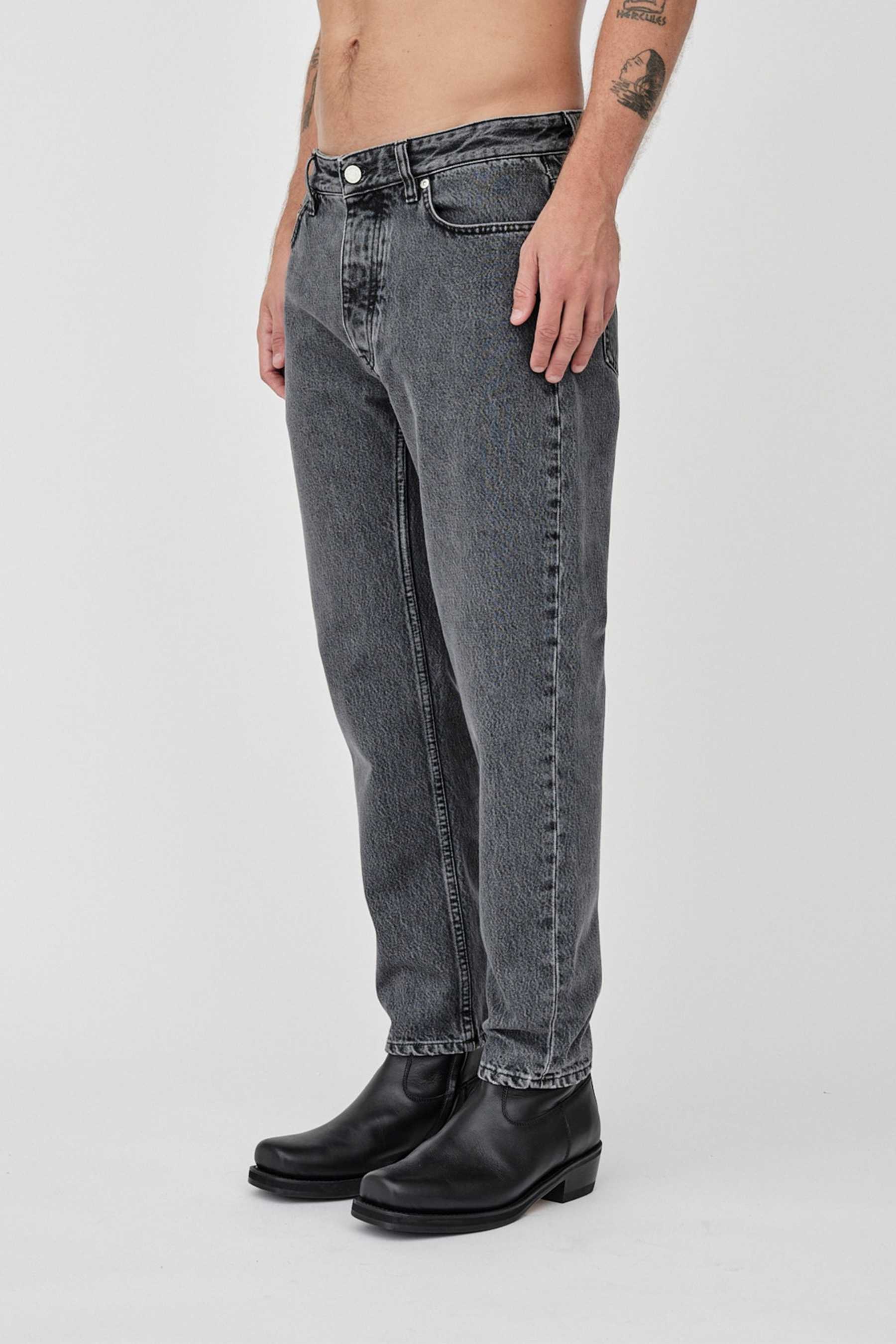 Ben is a pair of carrot-shaped jeans. The jeans have a mid-waist, button fly, and a cropped, tapered leg. The jean's construction comes with five pockets and five belt loops. Features branded logo buttons and rivets, a leather label, and our signature dart at the back pockets.