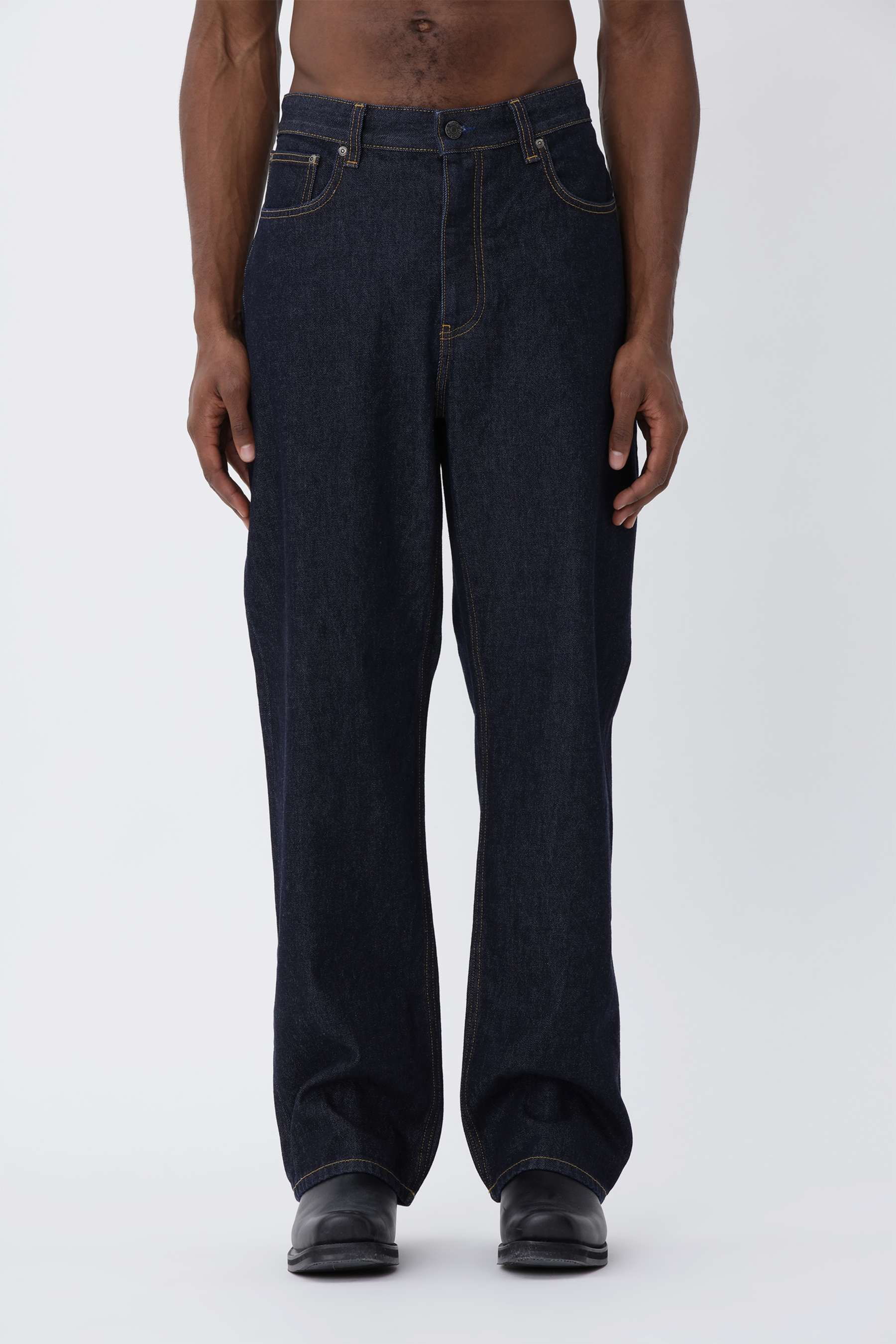 The Steve D. Blue Jeans are a 90’s-inspired style with a loose fit, mid waist, and relaxed straight leg. Crafted from 100% organic cotton denim, they feature a button fly, five-pocket construction, and branded hardware. Finished in a rich blue wash with subtle worn details for a classic vintage look.